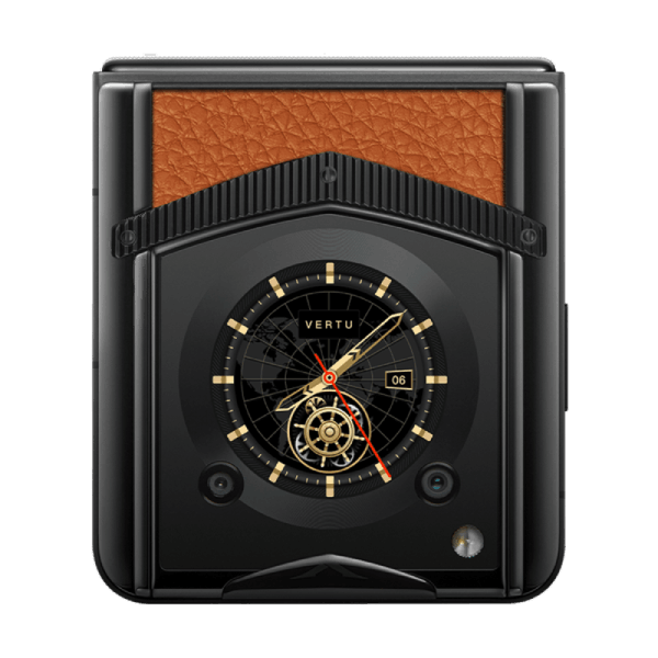 Các điểm nhấn quen thuộc của điện thoại Vertu cũng được lặp lại trên chiếc smartphone gập này, điển hình là chữ V mang tính biểu tượng ở mặt lưng, tựa như huân chương của hiệp sĩ giúp toát lên phong thái hoàng gia mạnh mẽ. Máy cũng được bao bọc bởi chất liệu da quý hiếm, mềm mại lại vững chắc.